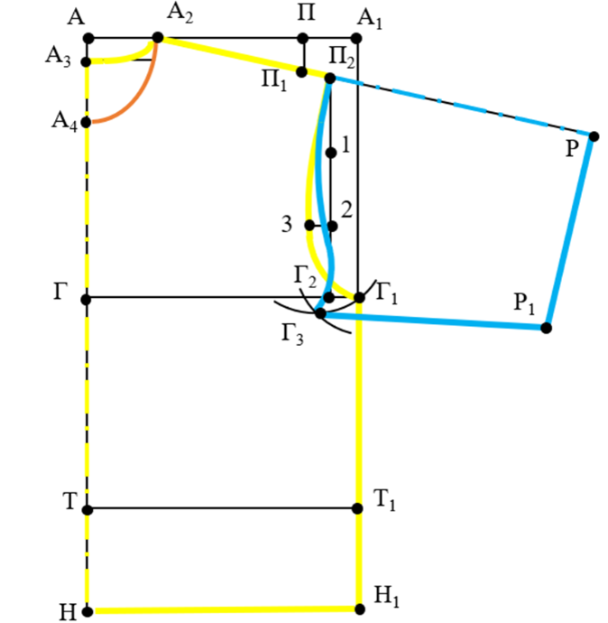 Креслення спинки/переду, рукава вільної футболки (зі свободою) та подовженою плечовою лінією