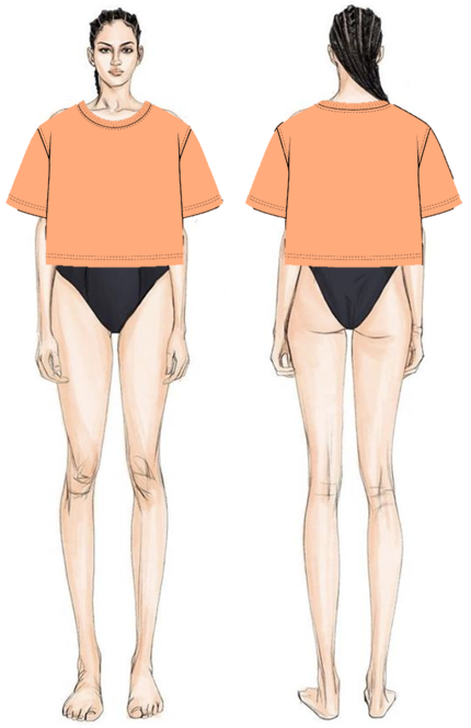 Креслення спинки/переду та рукава футболки, яка щільно прилягає до фігури