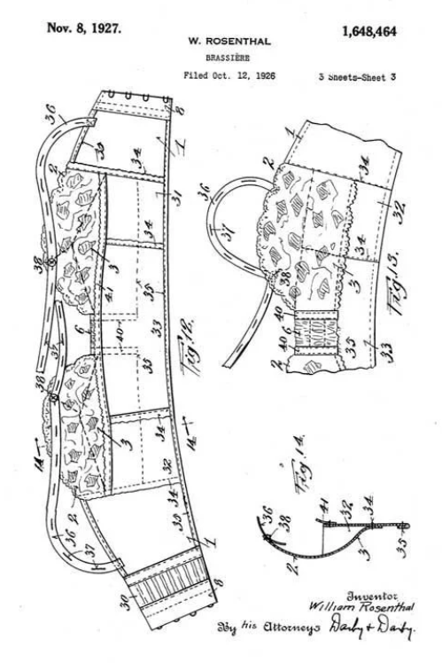Рис. 2.33 – Іда та Вільям Розенталь, їх перші бюстгальтери, патенти 1926 і 1938 років та популярна модель бра Maidenform