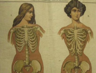 Щойно винайденим корсетом зацікавилася іспанська інквізиція, яка проголосила жінок джерелом усіх бід і звела плоску фігуру в культ. Знатні дами почали носити металеві корсети зі сталевими болтами, які були дуже важкими і схожими на лати. Корсет робив груди пласкими і деформував жіноче тіло. З раннього віку дівчата носили корсети зі свинцевих пластин, які стискали грудну клітку і не давали грудям розвиватись.