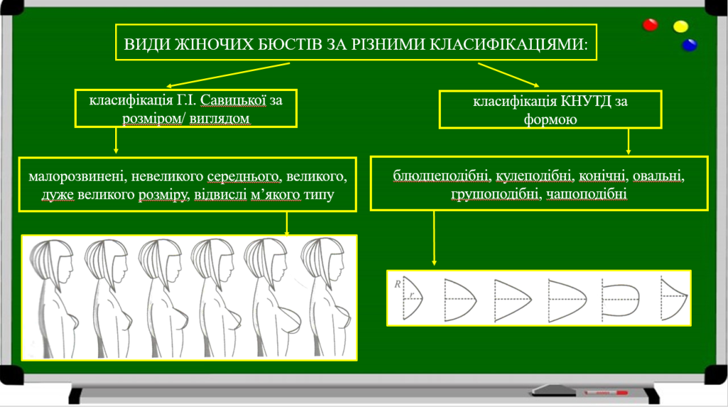 Рис. 2.52 – Різновиди жіночих бюстів за класифікаціями Г.І. Савицької та КНУТД