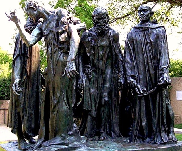 Рис. 2.3 – «Громадяни Кале» (фрагмент скульптури);чоловік в камізі (Німеччина, початок XVI століття) та жіноча каміза початку ХV ст