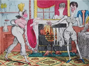 Чоловічий корсет виконував ті ж функції, що й жіночий, хоча й зберіг властивості бронежилету. Корсети стали частиною повсякденного чоловічого гардероба, особливо серед аристократії. Вони допомагали створювати елегантний силует, підкреслити талію та груди. Їх носили під костюмами, які були популярні в ті часи. Й, зазвичай, чоловічі корсети були менш жорсткими, ніж жіночі, та забезпечували більше свободи рухів. На XVIII-XIX століття припадав пік популярності цього предмета гардероба. Відомо, що навіть особи королівської крові, використовували його, щоб виглядати стрункіше. Найбільша популярність прийшла до чоловічого корсета в XIX столітті, коли до моди увійшла постать «денді». Вона передбачала осину талію, яка, підкреслювала широкі плечі. Чоловікам, що одягали фрак та білі панталони, потрібно було ховати відкритий для огляду живіт, тому вони тягли його корсетом (рисунок 2.15).
