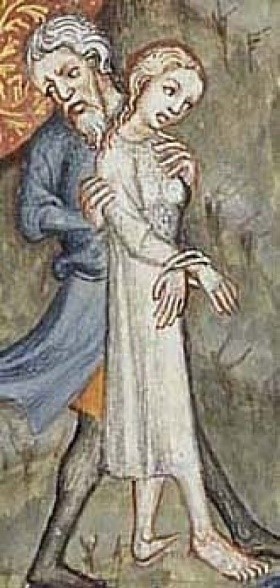 Лише у середні віки з’явилась звичка і мода носити під верхнім одягом більш тонкий нижній шар. Перші натільні/білизняні вироби були простими за кроєм та однакові за формою, як для чоловіків, так і для жінок. Відомо, що в епоху Середньовіччя і чоловіки, і жінки носили камізу — натільну сорочку простого крою з льону, бавовни або вовни, з довгими вузькими рукавами і круглим вирізом горловини. Жіноча каміза доходила до щиколотки, а чоловіча, з клиноподібними вставками з боків, закривала верхню частину стегна. Каміза могла бути просторою або облягати тіло завдяки шнурівці, яка збирала тканину на боках. Існували жіночі камізи без рукавів, які трималися на плечах на вузьких бретельках, силуетом нагадуючи сучасні сорочки. Увічнення камізи є в знаменитій скульптурі Огюста Родена «Громадяни Кале». В ній в знак приниження в 1077 р. в Каноссі з’явився імператор Генріх VI, щоб попросити вибачення у папи Григорія VII, а в 1347 р. магістрати Кале вийшли з міста в знак капітуляції перед Едуардом III (рисунок 2.3).