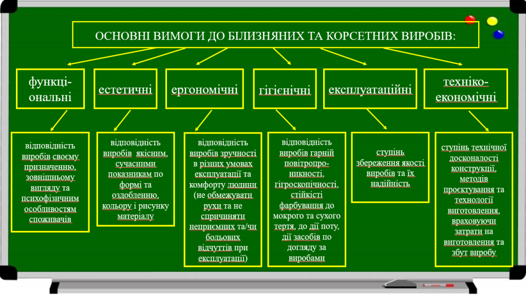 Рис. 2.44 – Основні вимоги до білизняних та корсетних виробів
