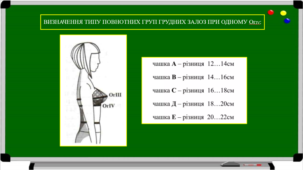 Конструкція корсетних виробів повинна бути пов’язана з індивідуальною будовою тіла людини та забезпечувати необхідну свободу рухів, допустимий тиск на тіло та зручність. Але в першу чергу, виріб повинен відповідати розміру/типу фігури людини. Корсетні вироби поділені на 3 групи розмірів: малі, середні та великі. Тип фігури визначається обхватом грудей ОгІV та повнотою грудної залози (різниця між обхватами грудей ОгІІІ та ОгІV) (рисунок 2.48).