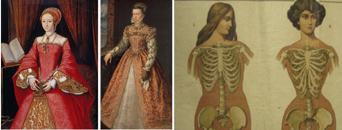Рис. 2.12 – Єлизавета I (королева Англії) у віці 13 років та Єлизавета Валуа (королева Іспанії), близько 1560 року; анатомія фігури людини без корсеті і з ним