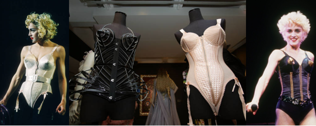 1960-ті роки ознаменувалися відродженням фемінізму, який дав поштовх руху за соціалізацію жінки та її звільнення від домашніх турбот. Корсет знову зникає із гардеробу, з’являючись на показах дизайнерських колекцій або на виступах знаменитостей. Замість корсету жінки почали носити комбінації, які додавали трохи стрункості. У 1990 році Жан-Поль Готьє створив для співачки Мадонни корсет з гостроконечним бюстгальтером (рисунок 2.25), представлений сімома роками раніше в рамках колекції осінь-зима.