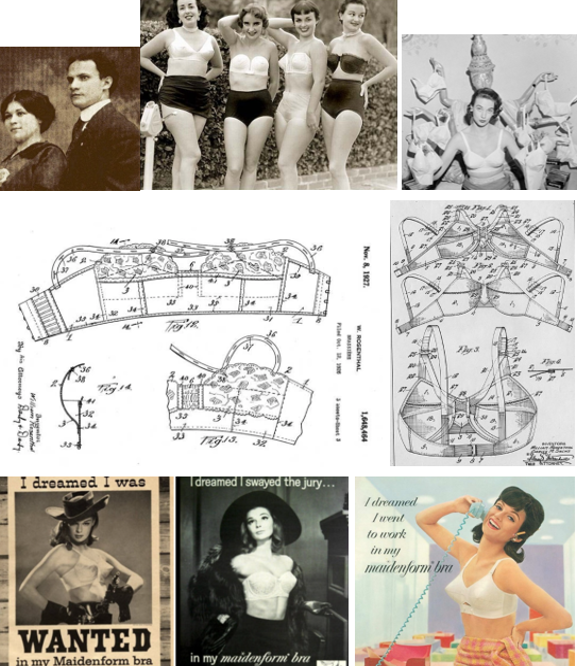 Рис. 2.34 – Іда та Вільям Розенталь, їх перші бюстгальтери, патенти 1926 і 1938 років та популярна модель бра Maidenform