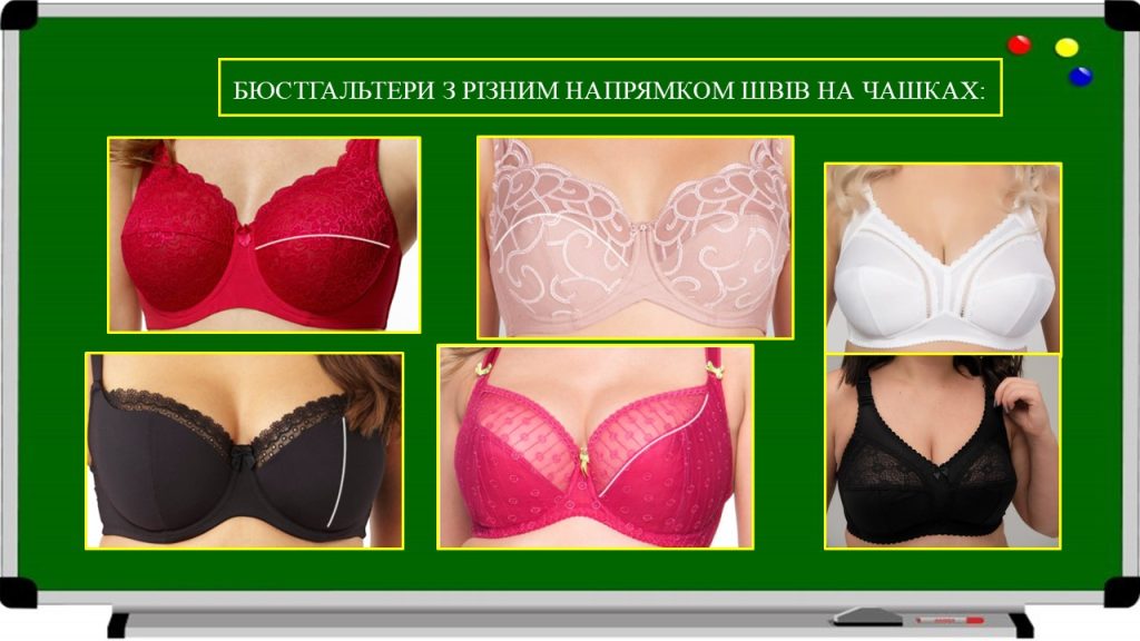 Рис. 2.7 – Бюстгальтери з різним напрямком швів на чашці