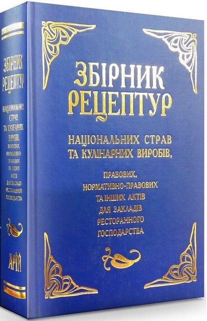 Збірник рецептур страв та кулінарних виробів–це нормативний документ, який регулює режими виробництва продукції (сумісність продуктів, їхня взаємозамінність, режим холодної і теплової обробки сировини тощо.