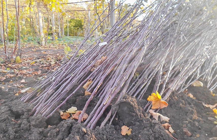 Для запобігання пошкодження рослин гризунами ділянку прикопу оточують рівчачком завширшки 50–60 см з прямовисними стінками. Впродовж зими канаву систематично очищають від снігу. Рослини з прикопки забирають безпосередньо перед посадкою. Якщо грунт підсох, коріння саджанців можна опустити на 2–4 години у воду.