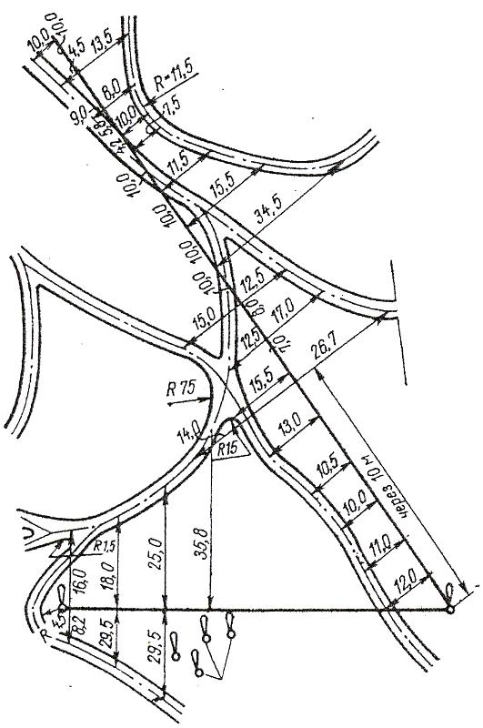 Ординати (перпендикуляри) обов’язково фіксують в місцях прив’язки елементів планування та в місцях дотику до базисної лінії. Для цього використовують засічки, які викреслюються довжиною 2–4 мм справа наліво під кутом 450.