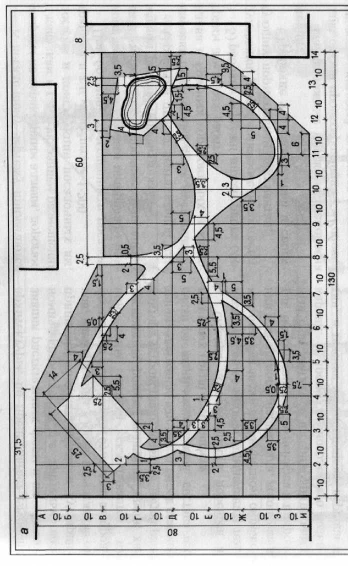 Якщо посадкове креслення перевантажене цифровим матеріалом, тоді прив’язка насаджень виконується на спеціальному розбивочному кресленні.