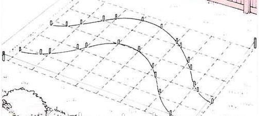 Основні елементи планування та посадкові місця декоративних рослин закріплюються на місцевості кілками наступним чином: