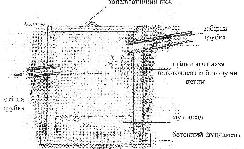 Якщо такий колектор не передбачений в міській системі, тоді стічні води відводяться в збірний колодязь, а звідти насосом відкачуються за межі ділянки. Насос монтується на висоті 60–80 см вище дна, що забезпечує осідання сміття та піску на дні колодязя.