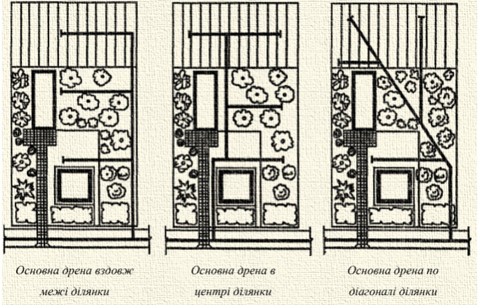 Закрита система.Основним способом осушення ділянок міського парку є закрита система труб або дрен, закладених в грунт на різній глибині. Глибина закладання дрен залежить від механічного складу грунту. Наприклад, на глинистих грунтах глибина траншей має становити 60–80 см, для суглинків глибину збільшують на 10–15 см, а піщані грунти потребують ще більшої глибини – до 1 м. За наявності деревних рослин глибина укладання дрен має бути в межах 1,2–1,4 м. Для відведення води від будівлі дренаж закладають на глибину нижче підошви фундамента на відстані 3 м від нього.