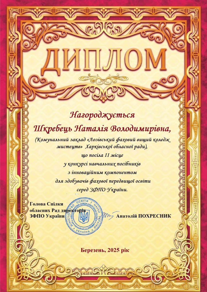 Тези “Використання інноваційних технологій на уроках української мови та літератури” / Традиційні та інноваційні підходи розвитку сучасної освіти в Україні: Збірник наукових праць: Матеріали VIII Всеукраїнської науково-практичної конференції “Традиційні та інноваційні підходи розвитку сучасної освіти в Україні” (м. Одеса: КЗ «ОПФК», 2025. 148 с.) – с. 141-144