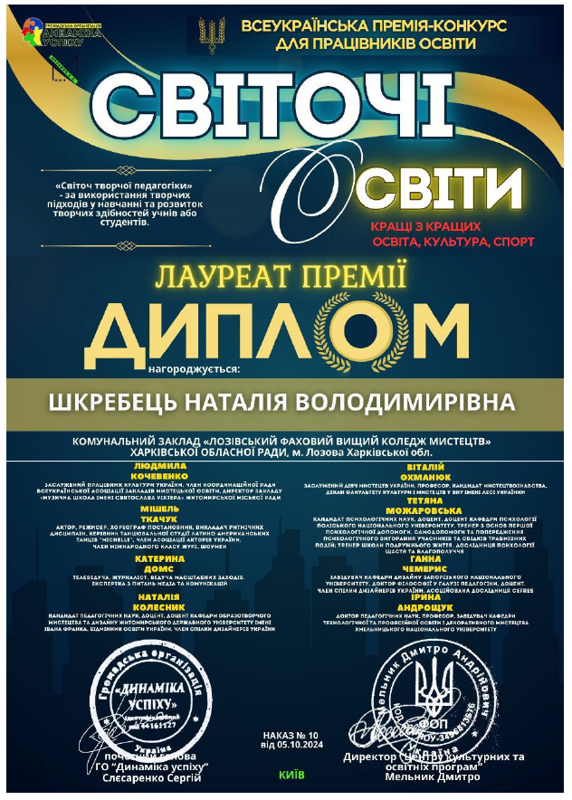 Стаття «Інноваційні технології на уроках української мови та літератури» в журналі «Фахова передвища освіта», №1, 2024 рік.