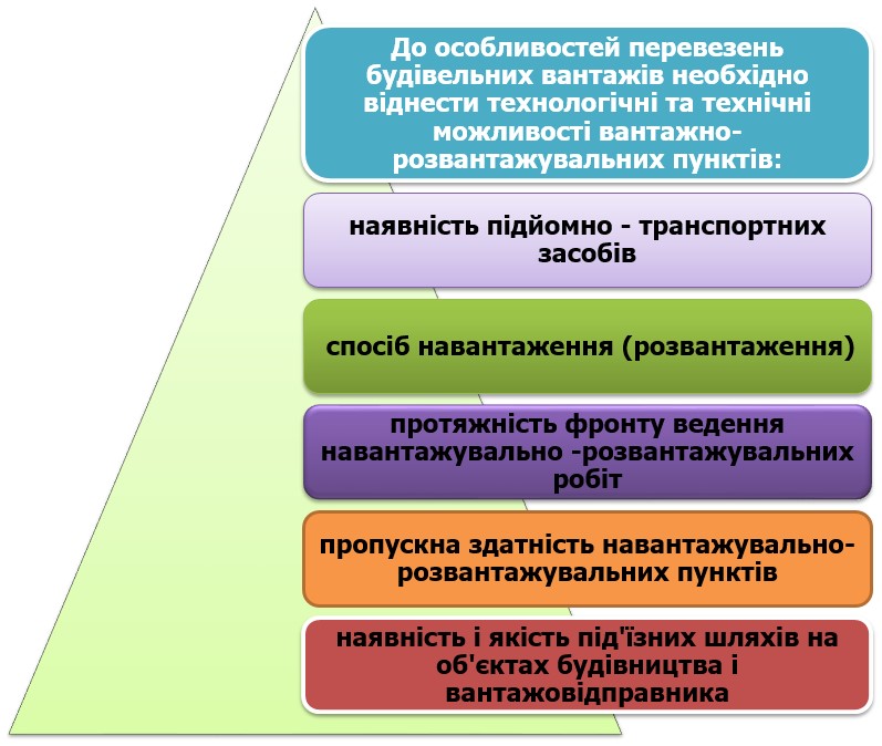 До особливостей перевезень будівельних вантажів необхідно віднести технологічні та технічні можливості вантажно-розвантажувальних пунктів (див. рисунок 3.67).