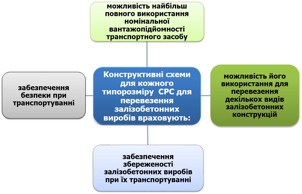 Конструктивні схеми для кожного типорозміру СРС для перевезення залізобетонних виробів ураховують низку вимог (рисунок 3.68).