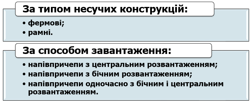 – касетного (для панелевозів, фермовозів і сантехкабіновозів);