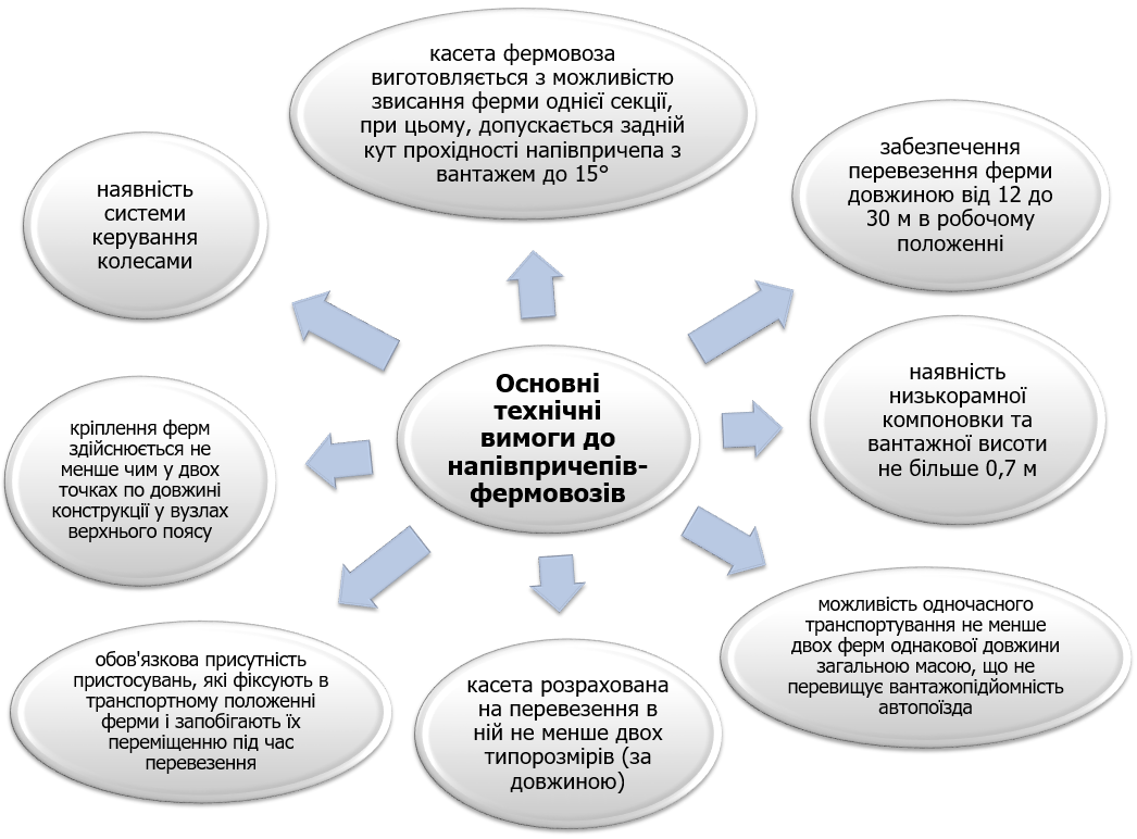 17. Які основні технічні вимоги до напівпричепів-фермовозів?