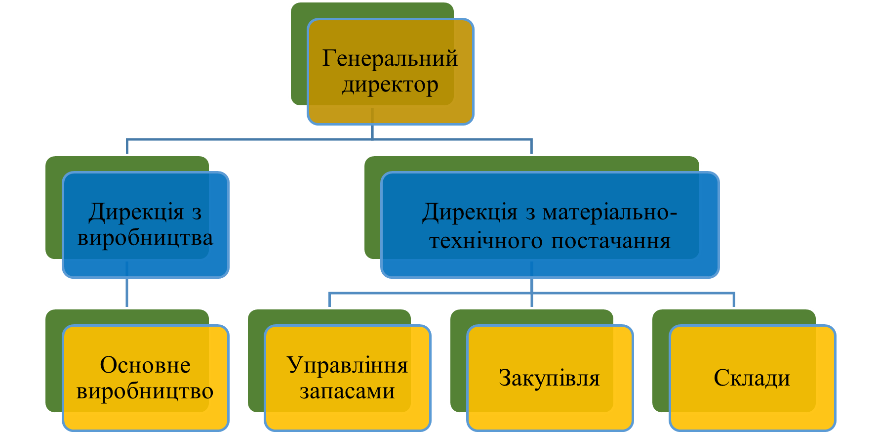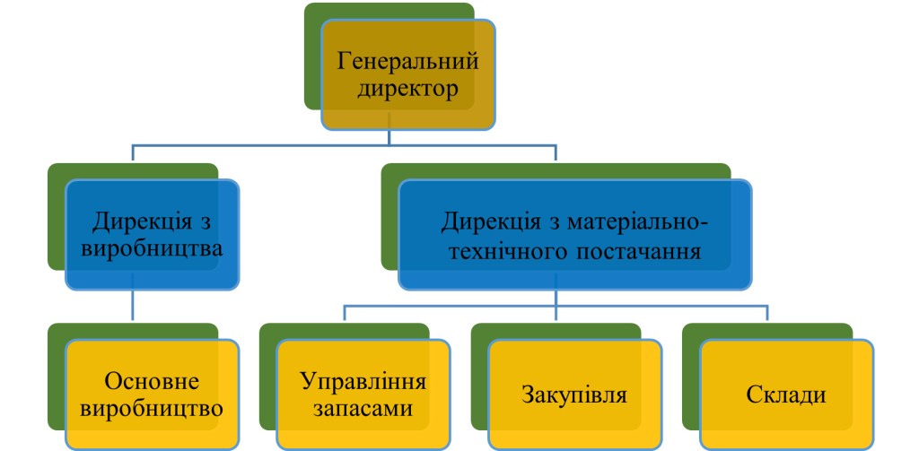 На рис. 22 представлено варіант організації структури підприємства з розподілом перерахованих завдань між різними функціональними підрозділами.