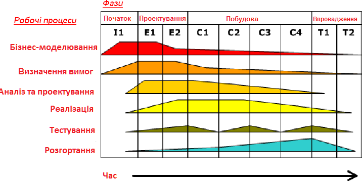 Рисунок 27 – Робочі процеси ЖЦ в уніфікованому процесі розроблення ПЗ